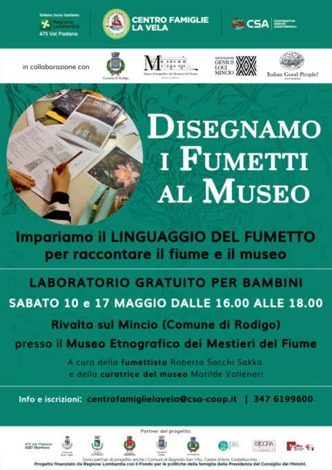 Al Museo arrivano due nuovi corsi di fumetto, il 10 ed il 17 maggio 2025 per i bambini ed il 24 ed il 31 maggio per i ragazzi e gli adulti. Questi appuntamenti sono sviluppati grazie alla collaborazione tra CSA, ATS Val Padana, Centro Famiglie La Vela, il Comune di Rodigo, associazione Genius Loci Mincio e Italian Good People!.