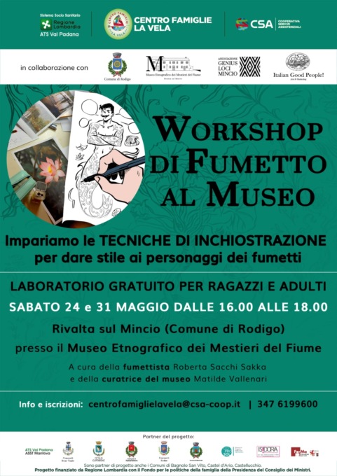A seguito del successo riscontrato nel primo laboratorio di fumetto, organizzato dal Museo Etnografico dei Mestieri del Fiume di Rivalta sul Mincio insieme alla fumettista Sakka, si svolgeranno altri due corsi dedicati all’arte, completamente gratuiti.