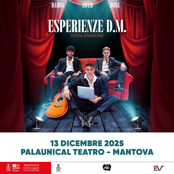Le star del web Awed, Riccardo Dose e Dadda arrivano finalmente a teatro portando dal vivo uno dei format più seguiti sul web. “Esperienze D.M. – Il format” dove si ascoltano e si commentano in presa diretta vocali di storie di vita vissuta “abbastanza particolari”. La parola chiave? IMPROVVISAZIONE. Rivolto a un pubblico maggiorenne. L’appuntamento è fissato per le ore 21, è possibile acquistare i biglietti sul sito dedicato.