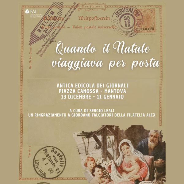 Mostra dedicata al Natale di un tempo, quando gli auguri viaggiavano attraverso cartoline illustrate imbucate con cura. In esposizione pezzi originali del secolo scorso: immagini, timbri e parole essenziali che ancora oggi custodiscono emozioni intatte. Un vero e proprio percorso nella memoria, tra carta, inchiostro e spirito natalizio. L’iniziativa, curata dalla Delegazione FAI Mantova, è aperta a tutta la cittadinanza e a ingresso gratuito.