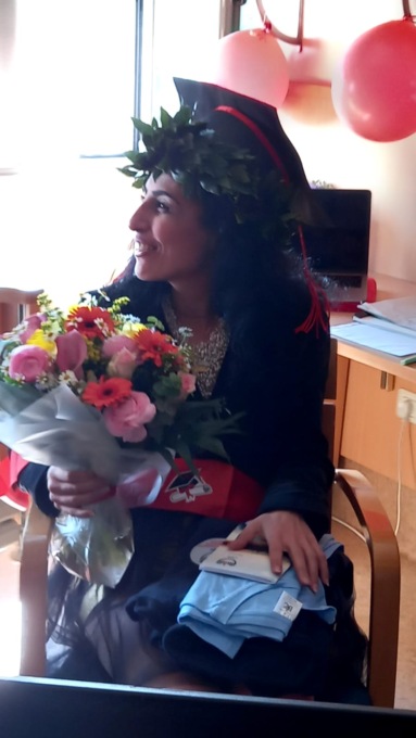 La laurea in Infermieristica la consegue all’hospice del Carlo Poma. Nella stanza in cui è ricoverata, con la commissione riunita tutta lì: alcuni membri in presenza, altri collegati da remoto.