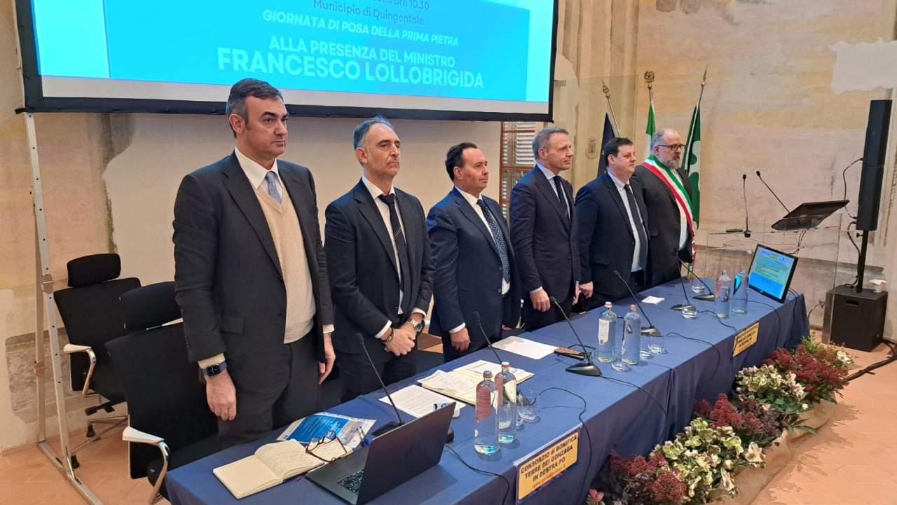 È stato presentato oggi, giovedì 27 novembre 20525, a Quingentole l’avvio dei lavori dell’intervento di tombamento della canala “Gronda Nord”, con la cerimonia di posa della prima pietra. Come riportato in un comunicato stampa di Regione Lombardia, all’evento hanno partecipato il Ministro dell’Agricoltura, Sovranità alimentare e Foreste, Francesco Lollobrigida, l’assessore regionale Alessandro Beduschi, il presidente di ANBI Francesco Vincenzi e il presidente del Consorzio di Bonifica Terre dei Gonzaga, Simone Minelli, insieme alle istituzioni e ai rappresentanti del mondo agricolo.