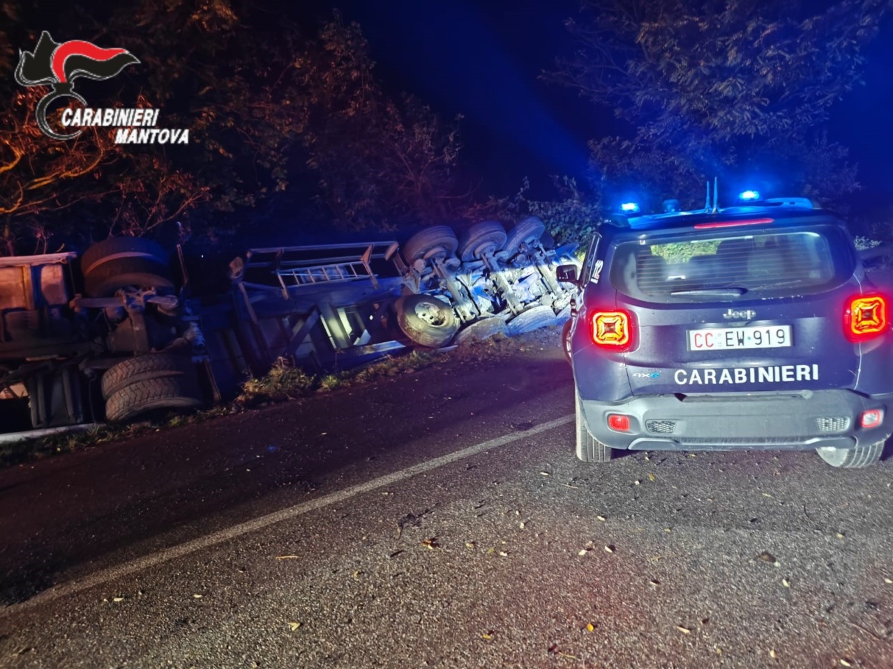 Un incidente stradale si è verificato nel tardo pomeriggio di giovedì 23 ottobre 2025 a Roncoferraro, lungo la Strada Provinciale 33. Intorno alle 19:30, un autoarticolato che trasportava vetro sbriciolato è uscito improvvisamente di strada nel tratto compreso tra il fiume Mincio e la rotatoria di Governolo, ribaltandosi su un fianco.