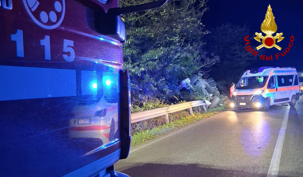 Nel frattempo, i Vigili del Fuoco hanno messo in sicurezza il mezzo pesante e l’area circostante, per permettere la rimozione del carico e il ripristino della viabilità.