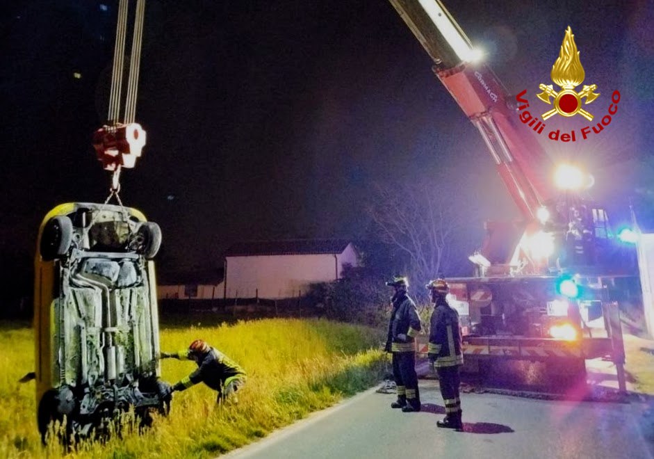 Un 26enne è stato salvato dai Vigili del Fuoco dopo essere finito con l’auto in un fossato pieno d’acqua a Castel d’Ario. Estratto dall’abitacolo grazie all’uso di un’autogru, il giovane è stato ricoverato in codice giallo all’ospedale di Mantova.