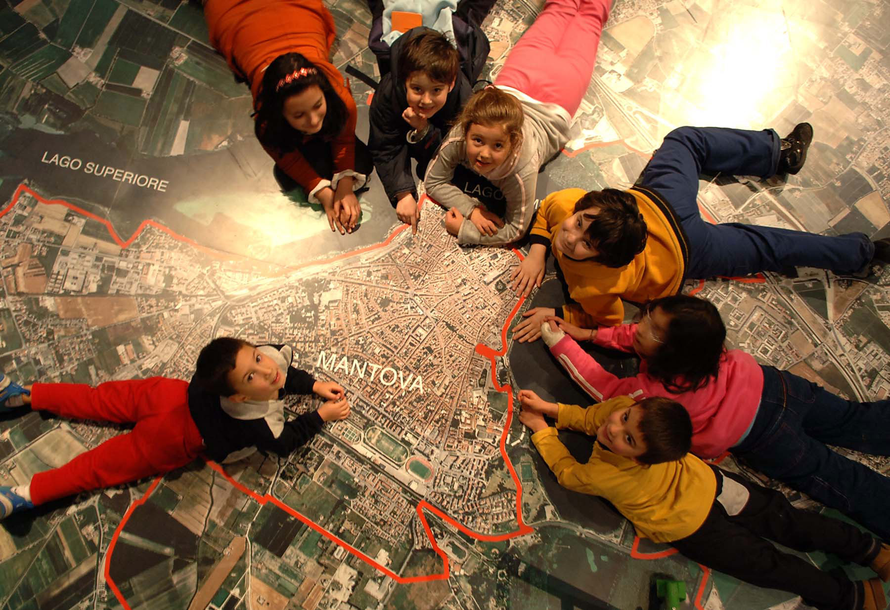 L’obiettivo è quello di far percorrere e sorvolare, letteralmente, gli ecosistemi del Mincio. Con questa finalità è stata pensata la postazione del Parco, su lungolago Gonzaga, costituita da una mappa aerea calpestabile delle Valli del Mincio e laghi di Mantova, grande 11×5 metri, che gli studenti potranno attraversare, osservare e studiare a colpo d’occhio per vivere un’esperienza spaziale del territorio della riserva naturale, che include i laghi di Mantova.