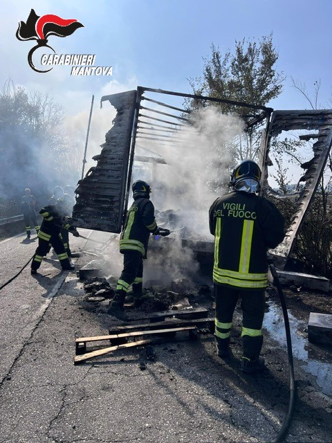 Sul posto sono intervenuti rapidamente i Vigili del Fuoco, supportati dai Carabinieri della Stazione di San Benedetto Po, per domare le fiamme e mettere in sicurezza l’area. Grazie al tempestivo intervento delle forze dell’ordine, l’incendio è stato contenuto senza gravi conseguenze.