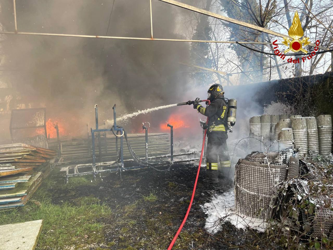 Per fronteggiare l’emergenza sono state inviate sette unità dei vigili del fuoco con due mezzi operativi, un’autopompa serbatoio (APS) e un’autobotte pompa (ABP). Le fiamme avevano interessato in particolare alcuni tubi utilizzati per l’irrigazione presenti all’interno dell’area agricola.