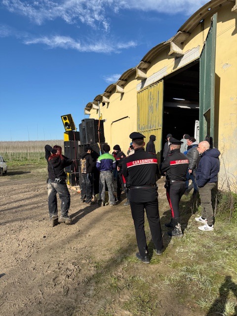 All’interno della struttura, i partecipanti avevano organizzato una scenografia completa: una postazione per il DJ, potenti casse acustiche e un generatore di corrente per alimentare l’impianto. Circa 45 i presenti identificati sul posto.