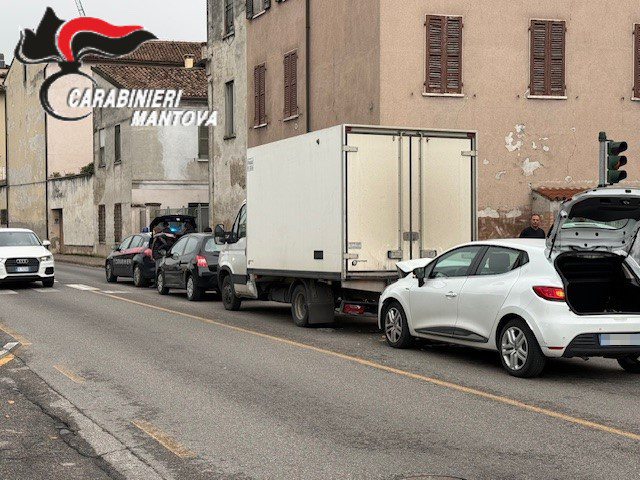 Oggi, intorno alle 13:45, un tamponamento a catena ha coinvolto due auto e un camion: è successo a Mantova, in viale Pitentino, all’altezza di piazza Don Leoni. La dinamica dell’incidente, come riportato dai Carabinieri in un comunicato stampa, ha visto una Renault Clio tamponare un furgone, che a sua volta ha tamponato una Twingo.
