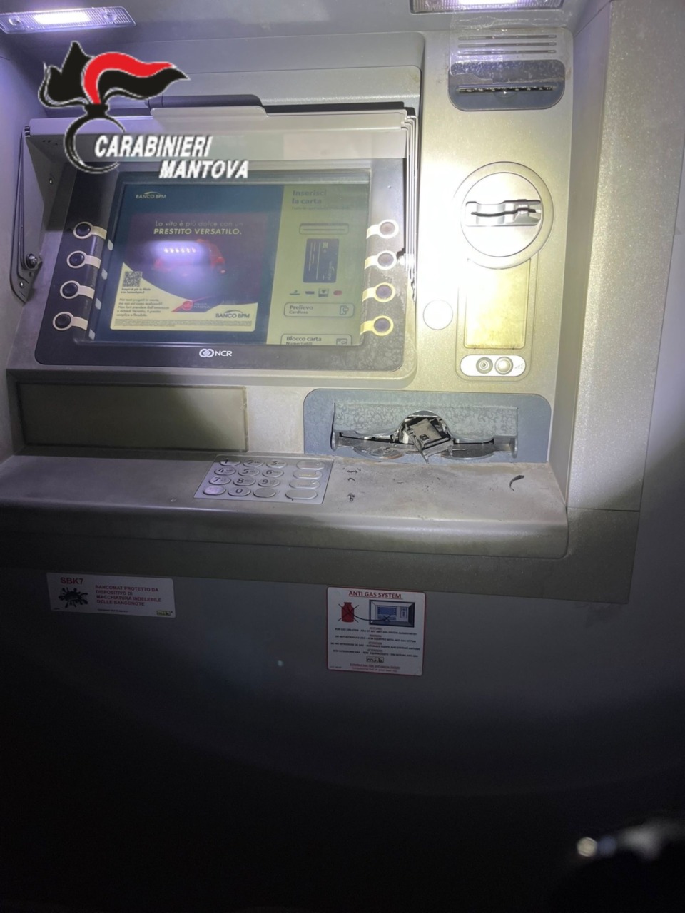 Il Nucleo Investigativo del Reparto Operativo di Mantova ha analizzato il veicolo per verificarne il collegamento con il tentato assalto al bancomat di Suzzara. All’interno sono stati trovati un piccone, strumenti da scasso e diverse marmotte esplosive utilizzate per gli assalti ai bancomat.
