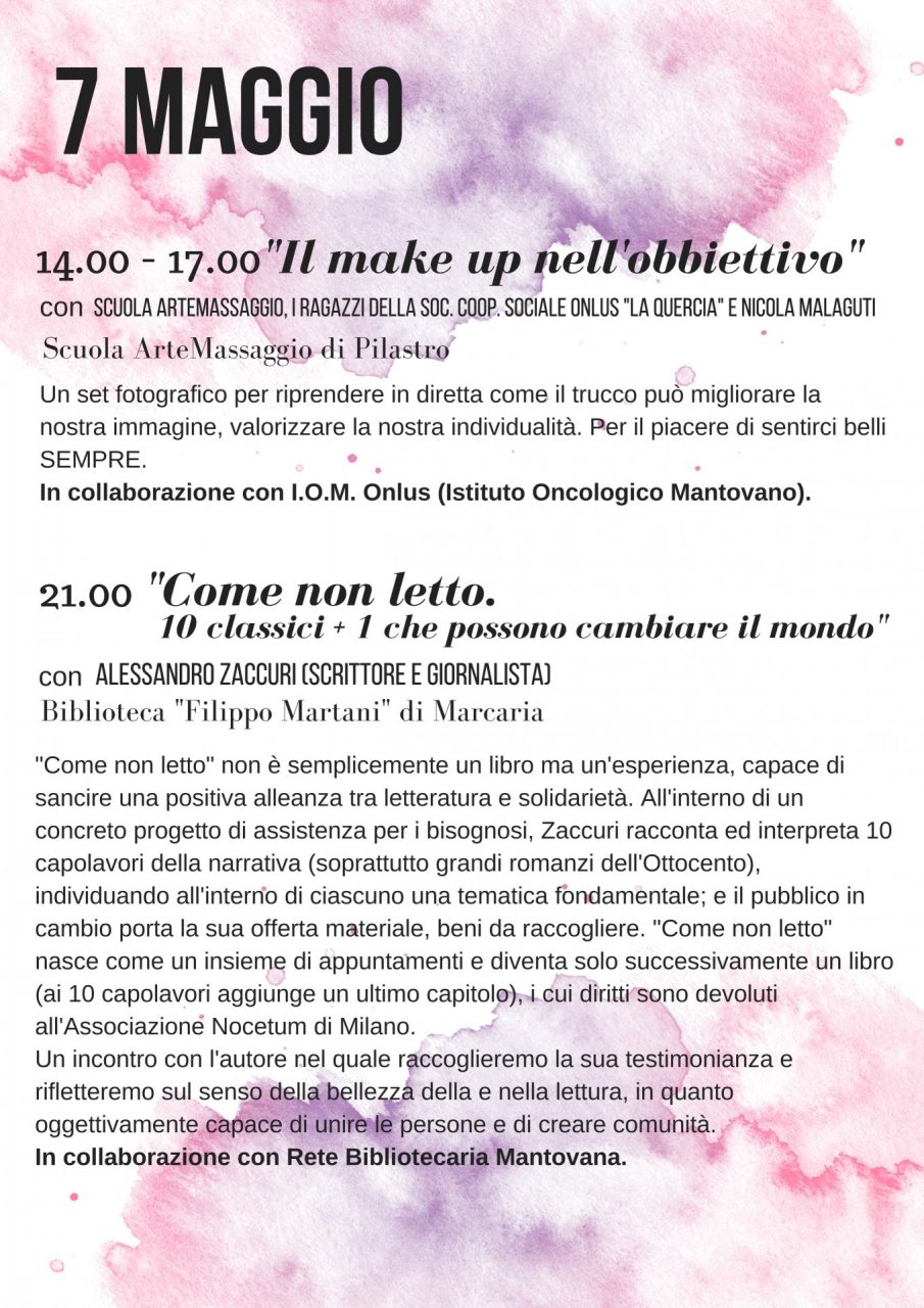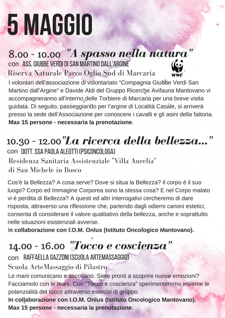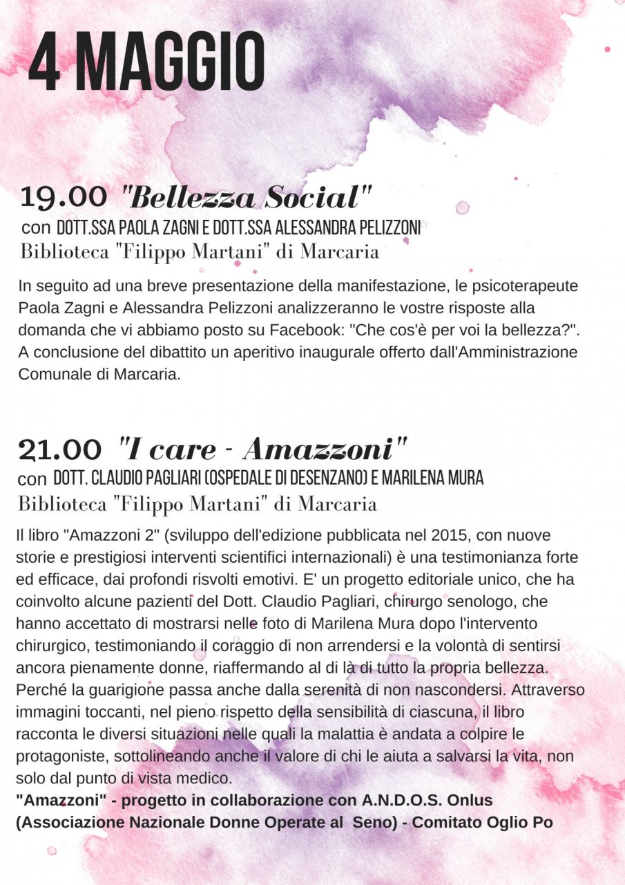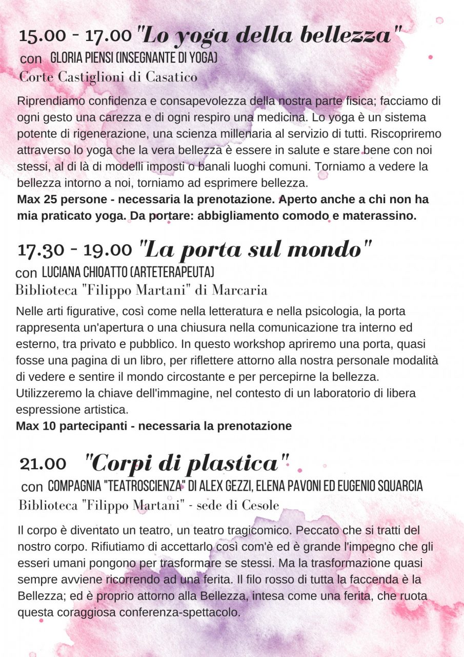 Il Festival della Bellezza inizierà venerdì 4 maggio e durerà fino a lunedì 7 maggio, dove si chiuderà con un arrivederci al 2020. Info e contatti: biblioteca@marcaria.mn.it; info@scuolaartemassaggio.com