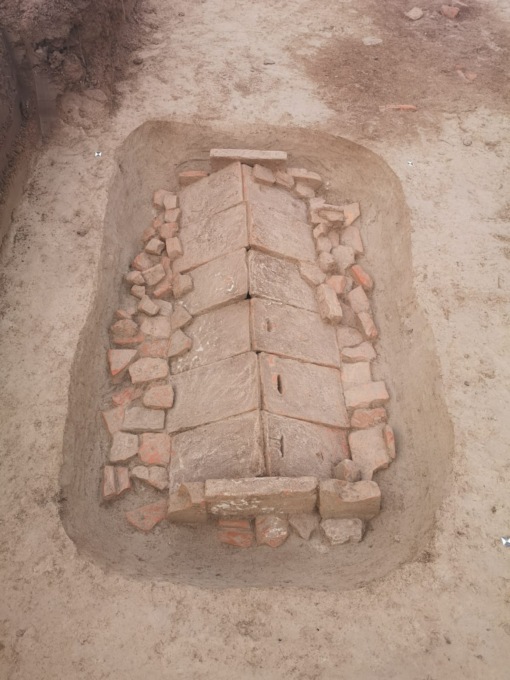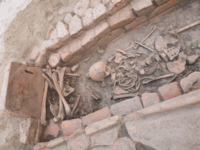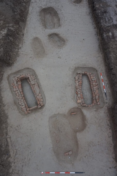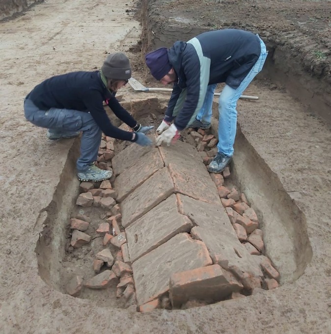 “L’area oggetto dei ritrovamenti coincide con un lembo di terrazzo del fiume Oglio, un luogo in antico naturalmente favorevole all’insediamento. Lungo una fascia di circa 350 m sono emerse 11 tombe, delle quali tre con copertura cosiddetta “alla cappuccina”, formate da mattoni sesquipedali disposti a doppio spiovente a copertura del defunto, in quattro nuclei apparentemente separati, distanti fra loro alcune decine di metri. Le sepolture ad inumazione hanno restituito individui adulti, ma anche alcuni bambini. L’assenza completa di elementi di corredo rende al momento arduo esprimersi circa la loro collocazione cronologica, tuttavia il ricorso ad elementi laterizi di reimpiego nelle tombe più strutturate, forse provenienti da un vicino insediamento di età romana, potrebbe portare ad ipotizzare un inquadramento in età alto medievale. Tale ipotesi sarebbe avvalorata anche dal ritrovamento di alcune buche pertinenti ad edifici lignei, nonché a tracce di canali antichi, che stanno restituendo frammenti ceramici e di pietra ollare.