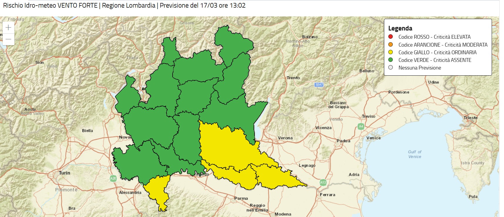 Per la giornata di domani, mercoledì 18 marzo 2026, la Sala operativa della Protezione Civile regionale ha confermato un peggioramento delle condizioni meteo, facendo scattare un’allerta gialla per rischio vento forte che interesserà gran parte del territorio, inclusa la provincia di Mantova.