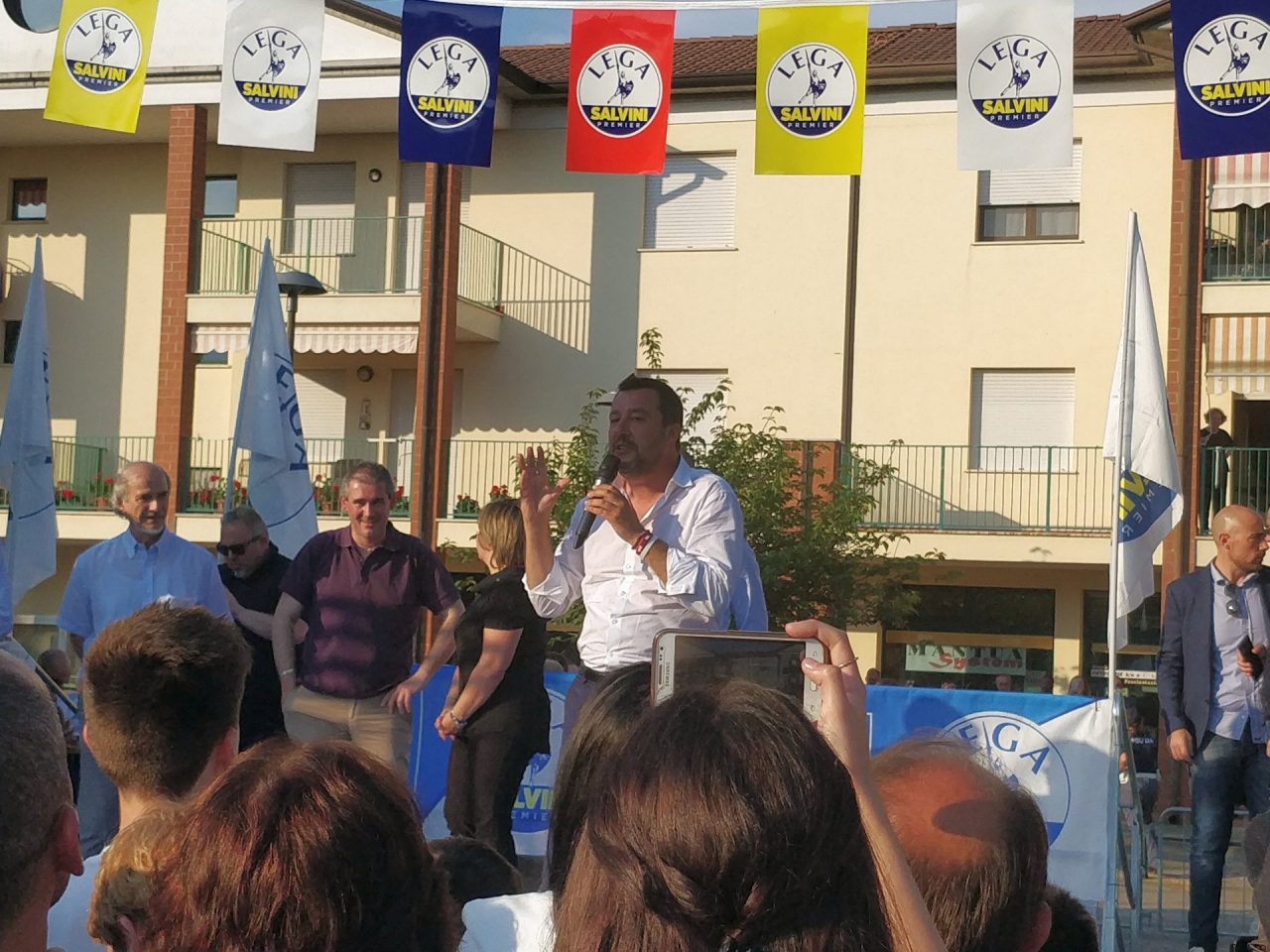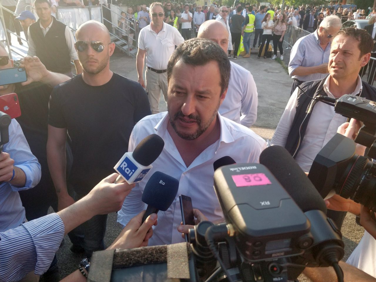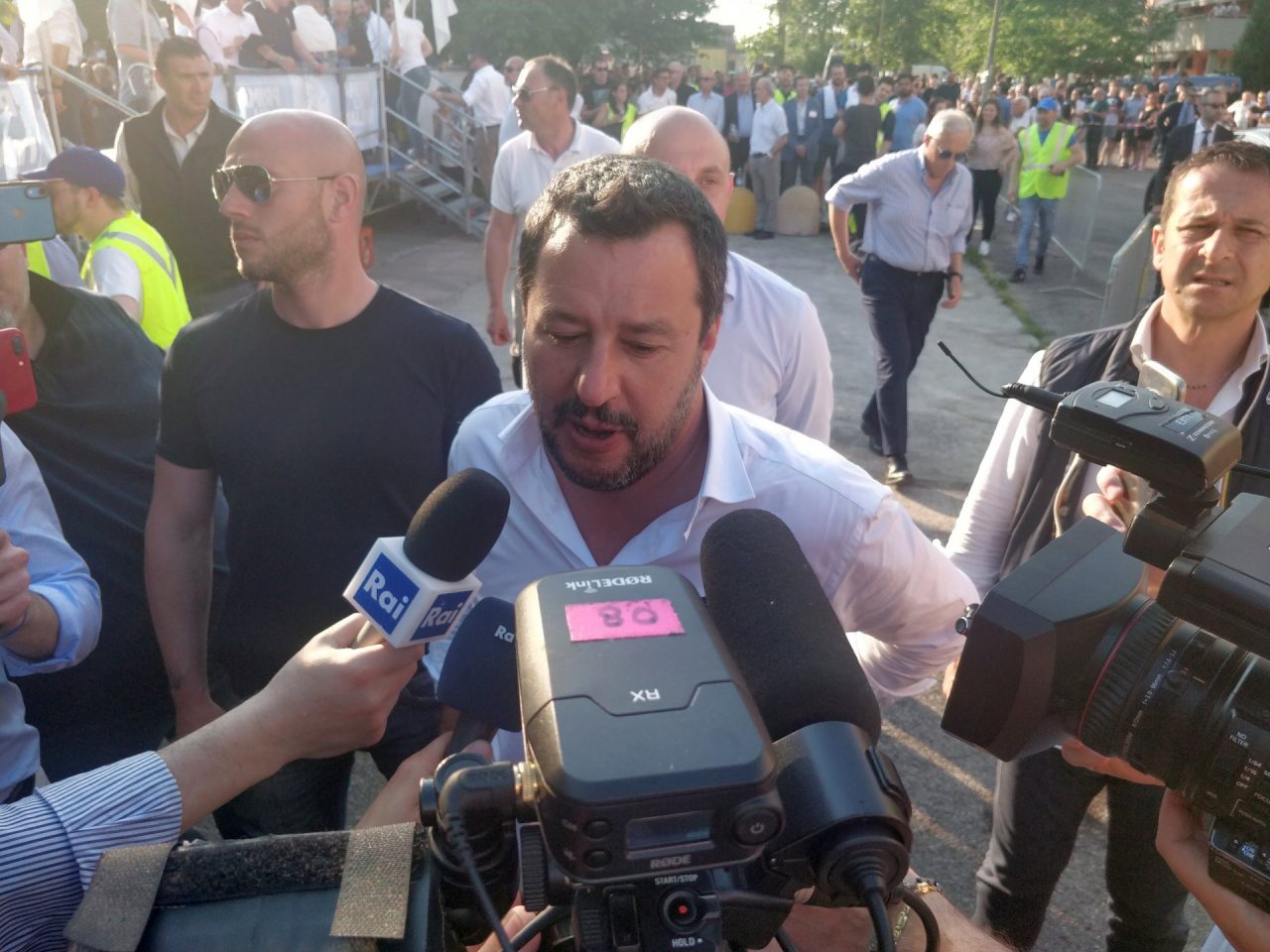 Alle ultime elezioni la gente ha votato gente normale, come noi. Se dico che in Italia non devono arrivare clandestini e delinquenti, mi pare di dire una cosa normale. E la gente ci ha votato in massa. Vedete bene – arringa la folla il ministro dell’Interno – che faccia e che espressione da soggetto pericoloso ho. La sinistra continua ad attaccarci ma non ha un progetto per il futuro dell’Italia: noi invece sì, ed è per questo che veniamo votati. Vogliamo dare un futuro ai nostri giovani, non precarietà. Vogliamo migliorare l’Italia, ridiscutere i parametri che ci vengono imposti dall’Unione Europea ed abbassare le tasse per uscire dalla crisi“: questa la ricetta salviniana.