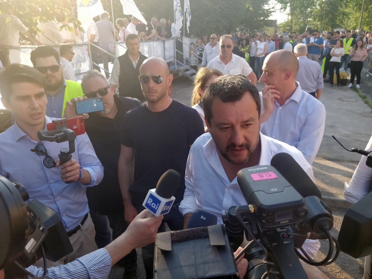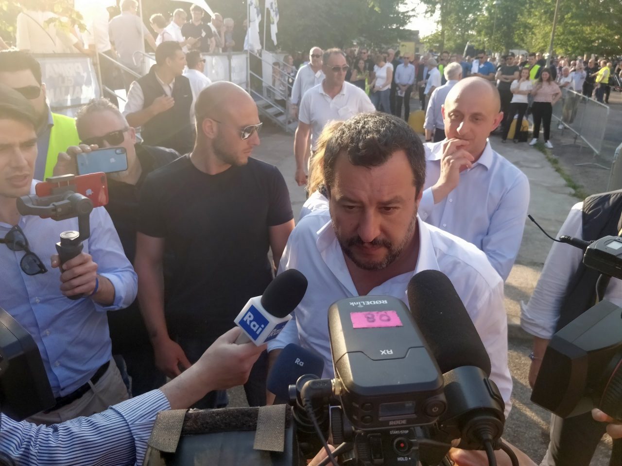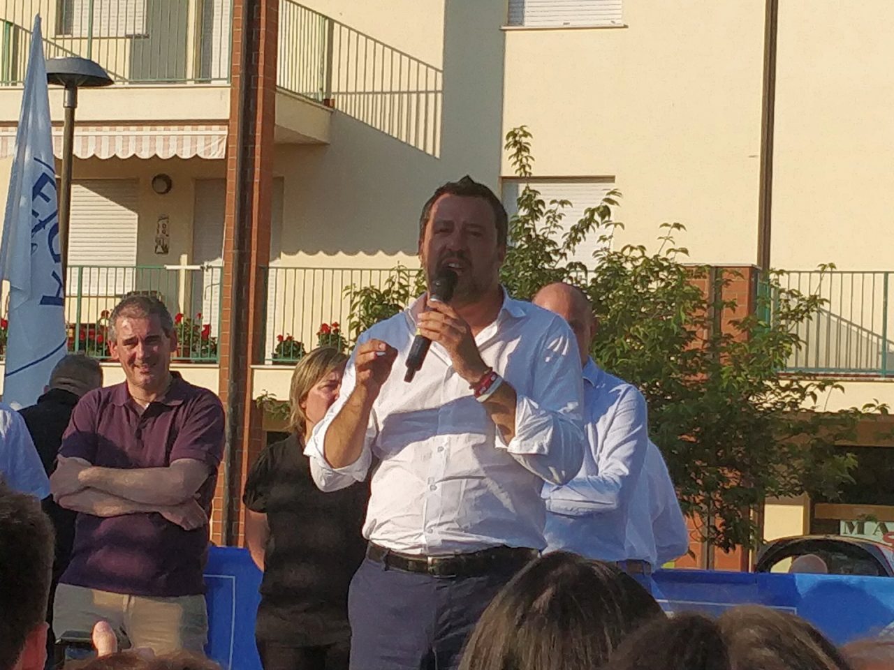 Alle ultime elezioni la gente ha votato gente normale, come noi. Se dico che in Italia non devono arrivare clandestini e delinquenti, mi pare di dire una cosa normale. E la gente ci ha votato in massa. Vedete bene – arringa la folla il ministro dell’Interno – che faccia e che espressione da soggetto pericoloso ho. La sinistra continua ad attaccarci ma non ha un progetto per il futuro dell’Italia: noi invece sì, ed è per questo che veniamo votati. Vogliamo dare un futuro ai nostri giovani, non precarietà. Vogliamo migliorare l’Italia, ridiscutere i parametri che ci vengono imposti dall’Unione Europea ed abbassare le tasse per uscire dalla crisi“: questa la ricetta salviniana.