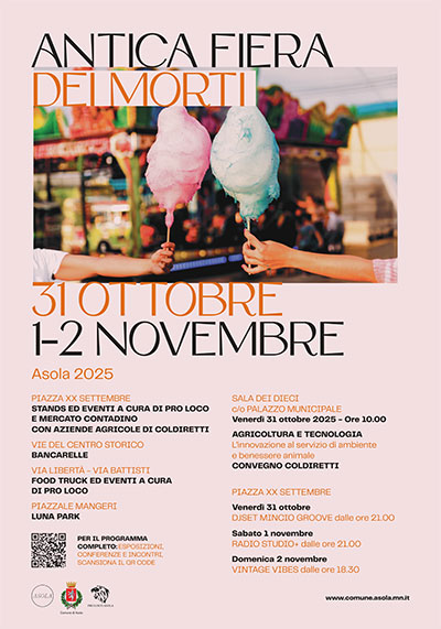 Asola si prepara a rivivere l’Antica Fiera dei Morti, in programma dal 31 ottobre al 2 novembre 2025. Per tre giornate, il centro storico si trasformerà in un vivace crocevia di tradizione, cultura e gusto, con un calendario ricco di eventi per tutte le età.