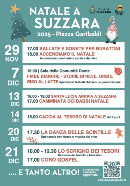 Proseguono gli eventi natalizi in piazza Garibaldi a Suzzara con appuntamenti fissati anche per sabato 20 e domenica 21 dicembre. La giornata di sabato si apre alle 10 a Piazzalunga con “BuonNatAL!”, letture dedicate agli anziani con declino cognitivo. Si prosegue poi alle 10.30 con “Le Piccinepicciò”, letture per bambine e bambini 0-2 anni.