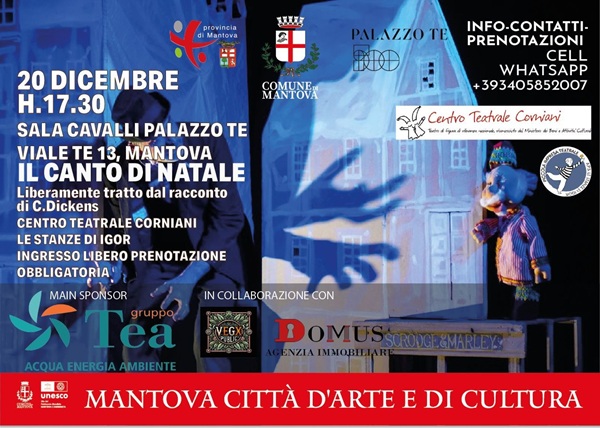 Tutto pronto a Mantova per mettere in scena una nuova versione de “Il Canto di Natale”. Si tratta di uno spettacolo dedicato ai bambini che racconta la celebre storia natalizia con i burattini. L’appuntamento è alle 17.30 del pomeriggio di sabato 20 dicembre 2025 alla Sala Cavalli di Palazzo Te.