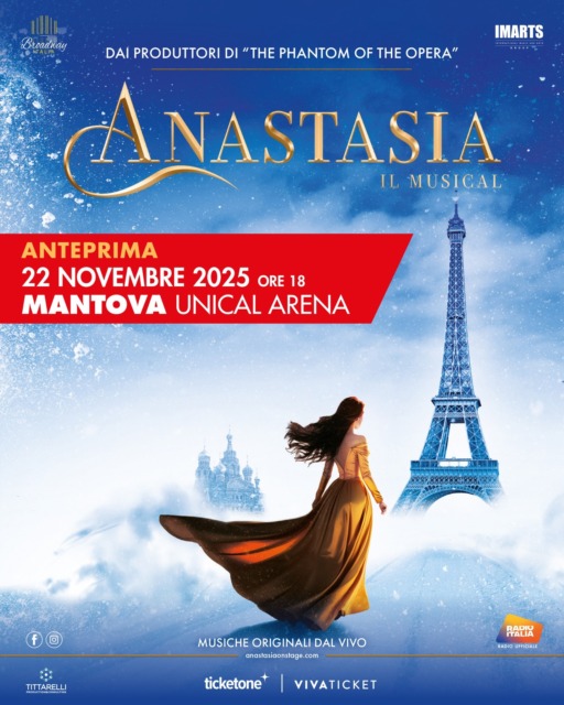 Dopo i  continui sold out registrati durante la prima tournée 2024-2025 nei maggiori teatri italiani, “Anastasia il Musical” torna in tour in tutta Italia. Lo spettacolo, portato in scena dal regista Federico Bellone e definito dalla critica un musical d’autore, debutta proprio da Mantova.